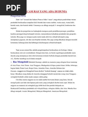 Warna kulit = kulit sedikit kuning. Umumnya, ras manusia dapat dikategorikan menjadi beberapa jenis, yaitu ras negroid, mongoloid, kaukasoid, australoid, dan khoisan. Pengertian ras macam macam dan ciri ciri ras kaukasoid. Mar 23, 2017 · beberapa ahli sosial mengartikan ras sebagai suatu kelompok manusia yang dapat dibedakan dari kelompok lainnya karena ada beberapa karakteristik fisik atau lahiriah, seperti warna kulit, bentuk muka (mata, hidung, bibir, dagu), warna dan bentuk rambut. Ada berapa macam ras manusia yang ada di bumi quora.
